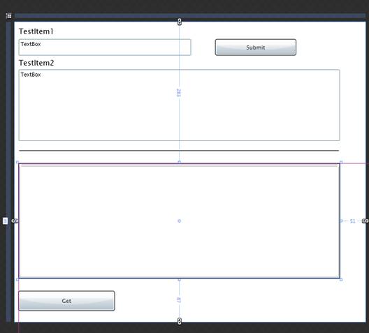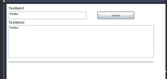 - Open page.xaml in ExpressionBlend. Make a form that looks something like what I've created below. Name the textboxesTestItem1TxtBox and TestItem2TxtBox