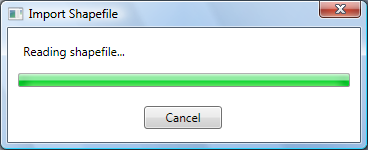The demo application uses a two-pass approach to importing a shapefile. The first pass reads the file header and every shape record until end-of-file is detected. The second pass then goes into a loop and creates one WPF shape object per ESRI shape record (a WPF shape is a descendant of the System.Windows.Shapes.Shape abstract class). The second pass also updates the progress window using the same threading model that was used during the reading phase.