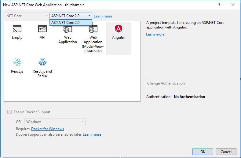 Select .NET Core from Web template and select ASP.NET Core Web Application and choose project name and browse location to save and click OK.