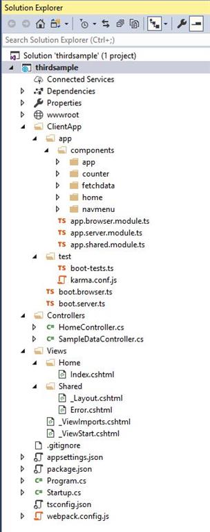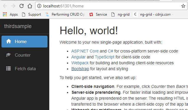 As you can see, a new Angular project is created and all required files are added with some default components, router, and navigation and with some sample data.