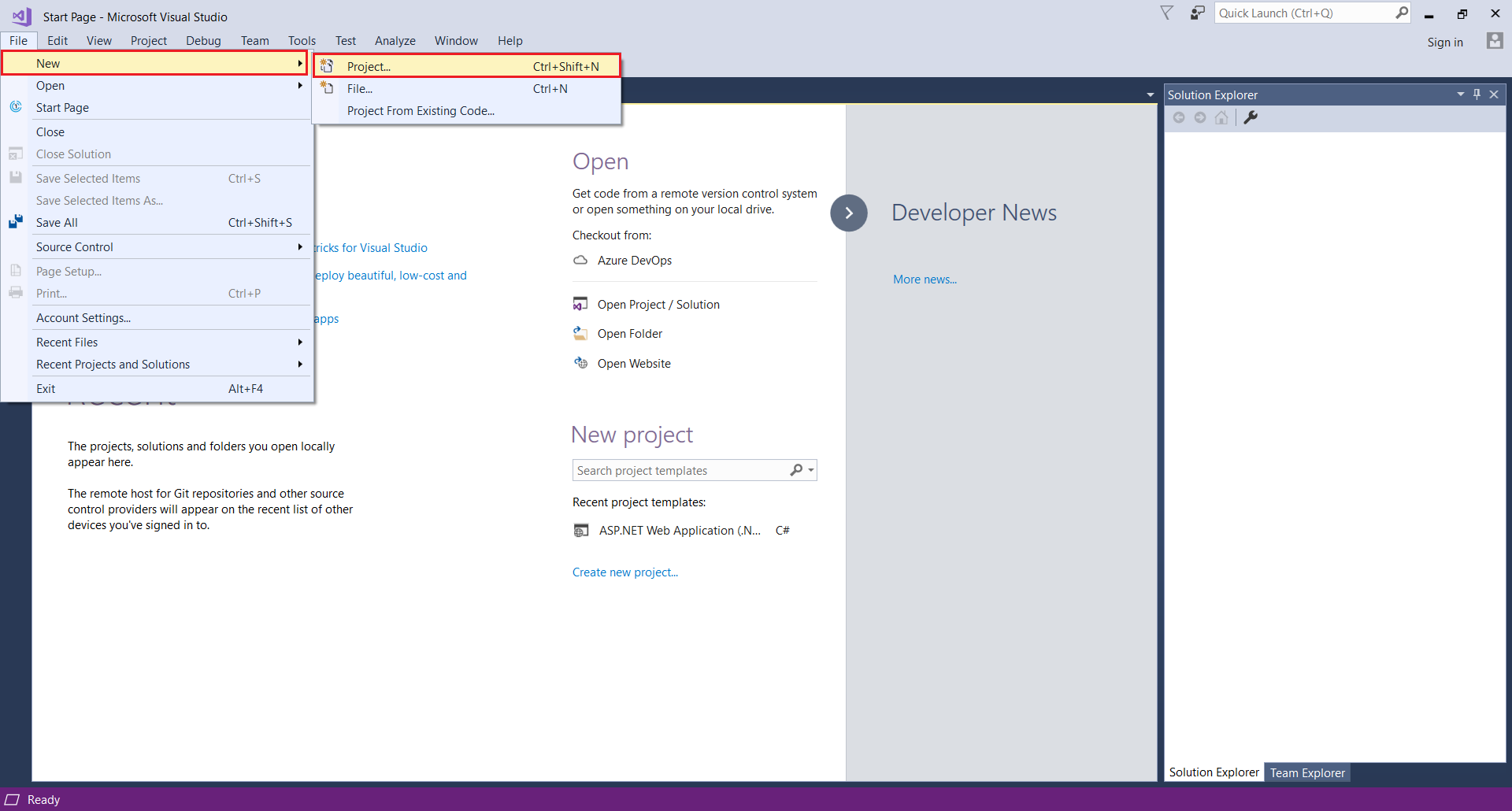 Open the Microsoft Visual Studio software and go to the File menu. Select "New Project", and then select "Web Application". In this article, we are going to use a web application to generate barcodes.