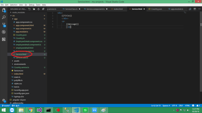 Create Service.html which will contain the following.