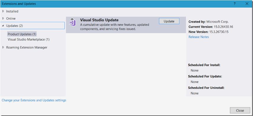 The easiest way I found to do by accomplishing the task was to first upgrade my version of Visual Studio from the version I had, see Image 2, where it shows I had version 15.0 and that there is a new version 15.3 which is ready for download and installation.