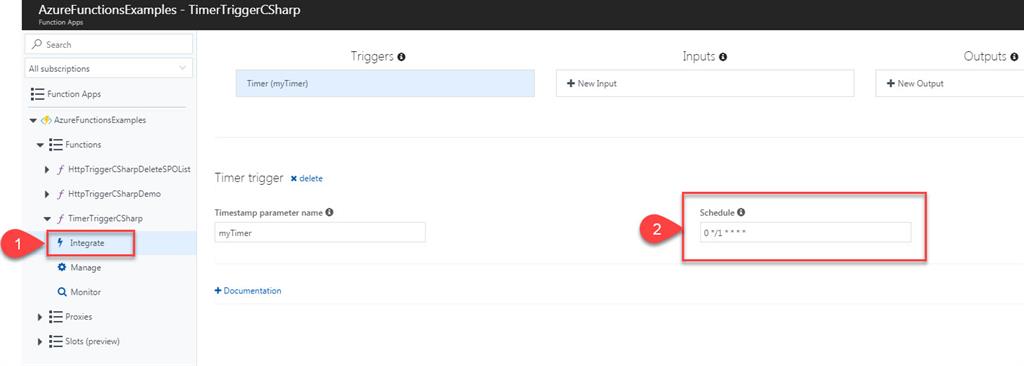 Enter the name for the new function, CRON expression for schedule and then click Create button.
