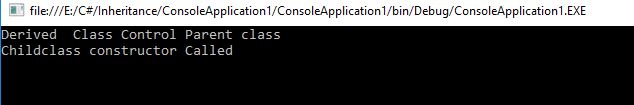 - public Childclass() :base("Derived Class Control Parent class")