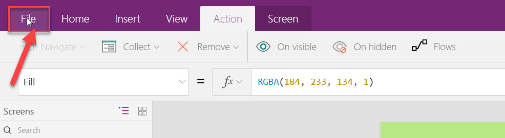 Edit the app using PowerApps studio. Once the changes are completed, click File tab.