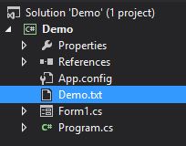 - FileInfo file = new FileInfo(@ "C:\Users\shekhart\documents\visual studio 2013\study\Demo\Demo\Demo.txt");