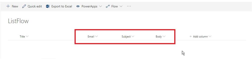 - I have created three columns (Email, Subject, and Body) in this list and they are shown in the below screenshot.