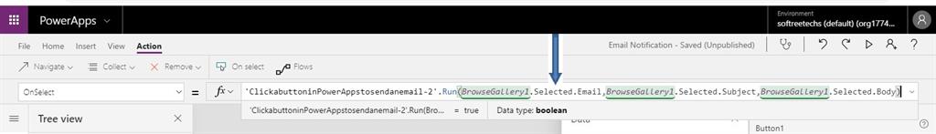 - Now click on the “Click a button in PowerApps to send an email”. (as shown below)