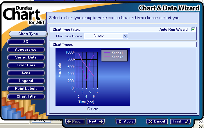 Now you have royalty-free charting components like you've never seen in any web application. To start using your Dundas charting application, however, takes a slightly different mindset than you are probably used to. Initially I dragged the chart from the toolbox onto a Windows Form. This brings up a wizard (shown in figure 2) that allows you to mold your chart component to your specific needs.