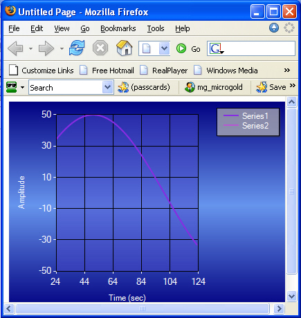 When I run the ASP.NET page I get the results shown in Figure 7 for Series 1. Note there is very little code actually needed to get going with charting. Much of the appearance of the chart is created by setting properties through the Dundas Wizard. You also have the option of setting the appearance of the control directly in the Visual Studio.NET IDE Property Window.