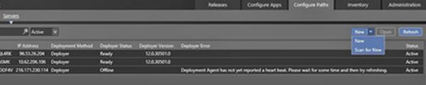 Open the Servers tab under Configure Paths in RM client. The Registered servers will be listed there as shown in the following screen. Click on Scan For New.