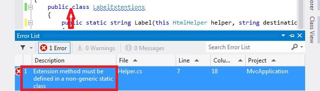 Let us say we are adding a method for a Label. We need to parameters indicating the class to which the extension class is extending. The other two parameters are just the same as what we saw when creating the HtmlHelper using a static method.