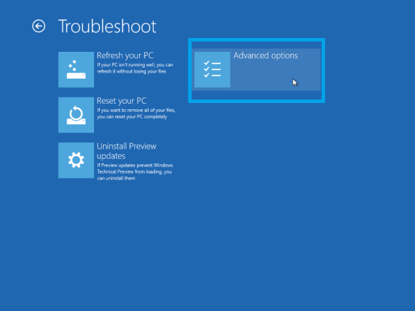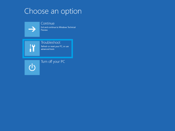 On that screen, click on the troubleshoot icon and another screen with various options will be displayed.
