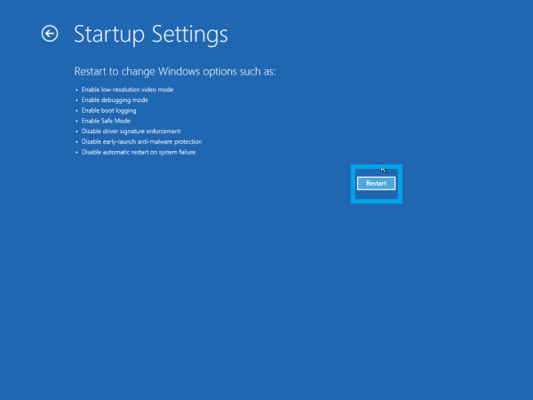A screen with Startup Settings will appear, you just need to click on the Restart button to enable safe mode settings.