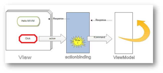 In the preceding image I tried to explain my MVVM sample application operation and ICommand binding flow in a very simple way.