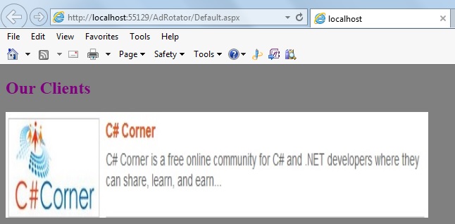 Now if a click on the above banner, it will navigate to C# Corner Home page.