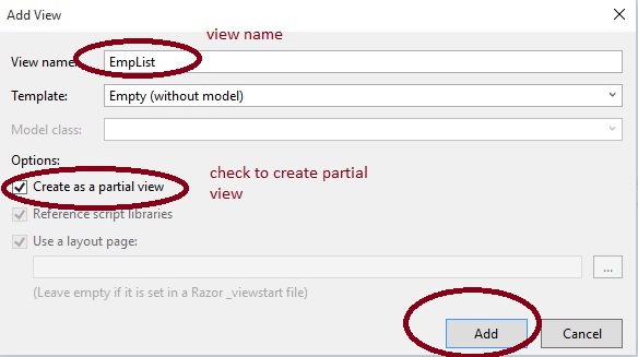 In the above controller class we have added to action method that is Index which returns the main view and EmpList which returns the partial view.