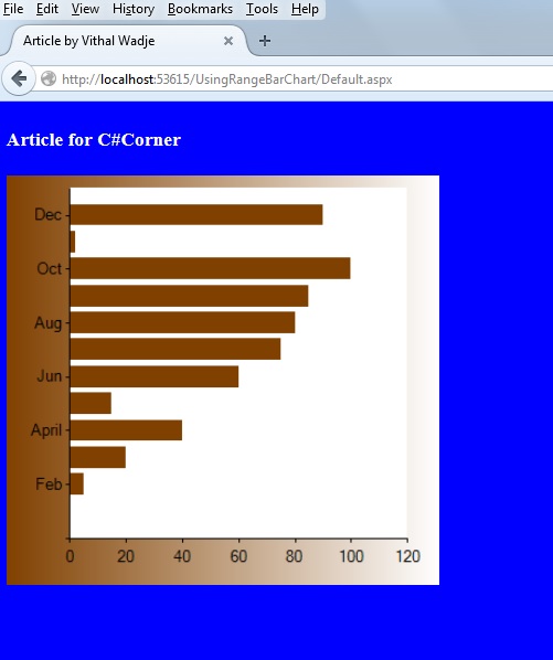 Now, we have the entire logic to bind the chart from the database, let us run the application. The RangeBar Chart will look as follows: