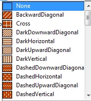 - BackHatchStyle: Sets the hatching style for the chart control, the default is None. It has the following styles that is used along with the chart as in the following:
