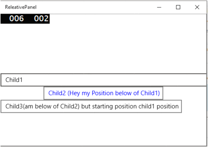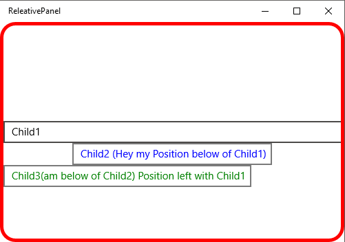 - <TextBox x:Name="txtChild2" MinWidth="250" Text="Child2 (Hey my Position below of Child1)" RelativePanel.AlignHorizontalCenterWithPanel="True" Foreground="Blue"