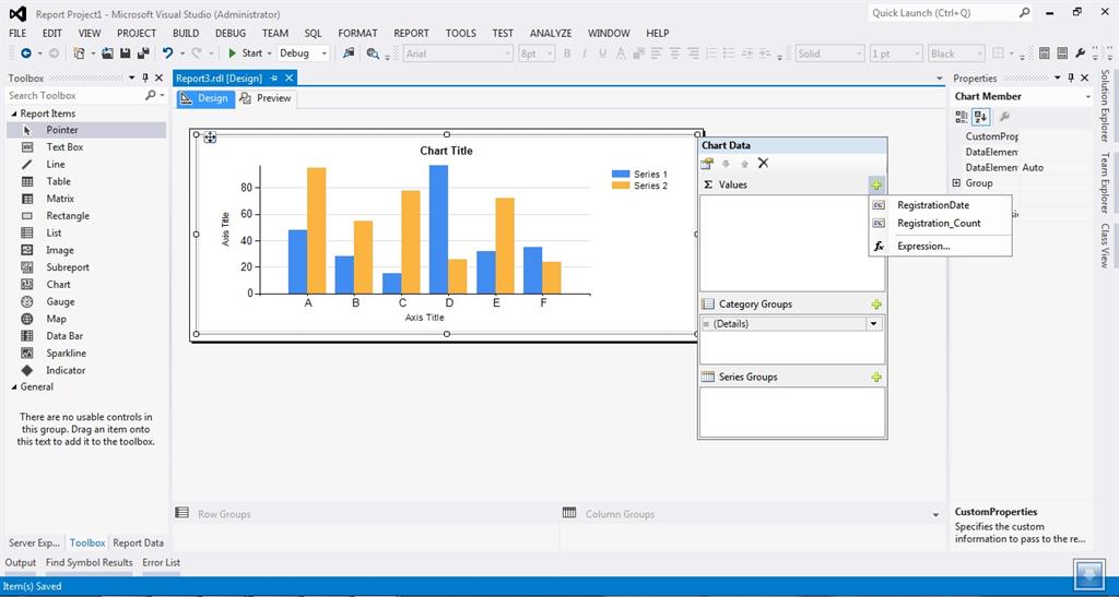 Now, in this article we will see how to add a Chart control to our report. I am using here the same solution of the Report Server Project to make it simple to understand.