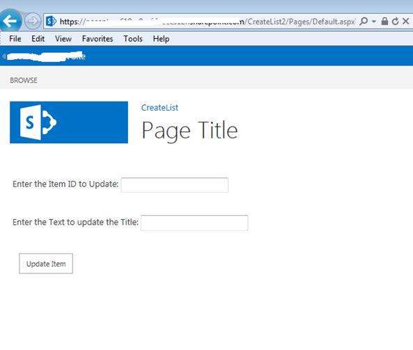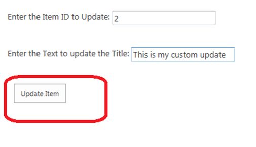 - In the preceding sample code snippet we are updating an item in a list based on the item id and the text value that is captured through the text boxes.