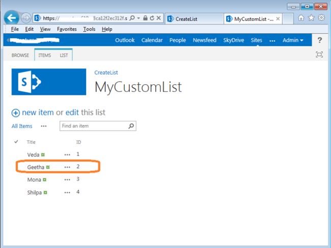 - Before entering the id in the text box let's open it in a new tab to navigate to the “MyCustomList” list.