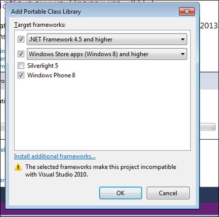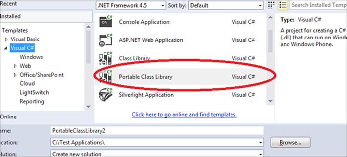Generally, a class library is a collection of classes. The common functions are written in classes and grouped together that make a single component. This component can be used in any number of applications. Earlier we had web applications and standalone applications that support the same kind of components. But in today's world, we have various kinds of applications, like web applications, Windows Phone, Silverlight, and a variety of applications that are totally different from each other so the traditional class library component can't support the entire range. Therefore Microsoft developed a new project type that resolved this problem. A Portable Class Library is supported by many types of applications. We need to select the application type during the creation of the project.