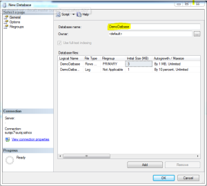 The preceding query uses the master and creates the database named "DemoDatabase". You can also directly create: