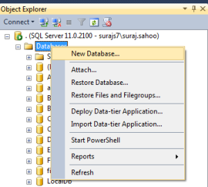 When in the first image as you see, the New Database is clicked, another window pops up as shown in the second image. Add the database name and there and it creates the database for you with a maxsize of unlimited. Then we create a Table for the storage of records.