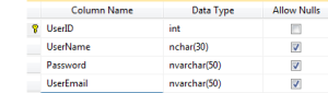 Then we add all the columns with the datatypes mentioned previously and save the table with a proper table name. Now here the checkbox for the Nullable column plays a vital role. Think and specify the value here. Finally the UI looks as in the following: