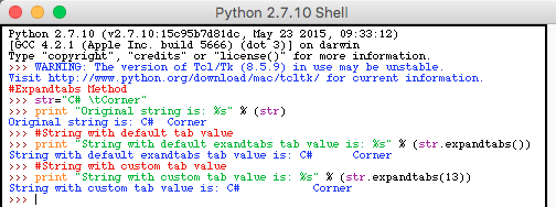 1. tabsize: It is the size of the tab to be added to the string. By default, tabsize is 8.