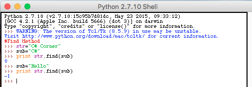 This method is used to find a string/sub-string in a given string. It returns the index of string/sub-string specified if it is found else it gives -1. It consists of three parameters and they are as below: