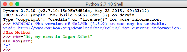 This method returns the maximum alphabet character from the string specified. It consists of one parameter and it is explained as below: