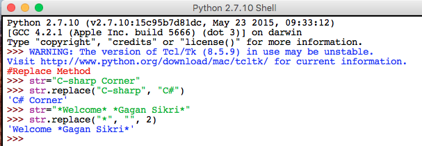 This method is used to replace a character/sub-string in a string with new character/sub-string. It consists of three parameters and they are explained as below: