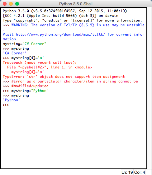 Strings are immutable, i.e elements of a string cannot be changed once they are assigned, the only way to change/update a string is reassigning new string to original string.