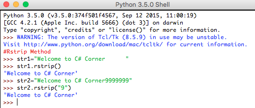 This method returns the string in which all characters have been stripped from the end of the string. It consists of one parameter and it is explained below: