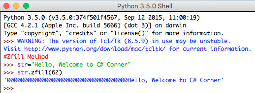 This method pads the input string specified with zeros on the left according to the width parameter defined. It consists of one parameter and it is explained below: