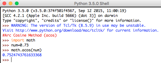 Syntax: math.acos(num)