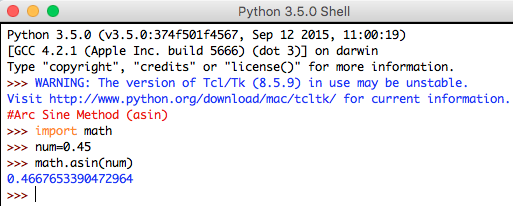 Syntax: math.asin(num)