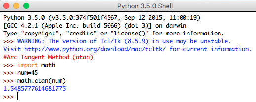 Syntax: math.atan(num)