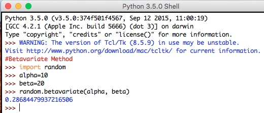Syntax: random.betavariate(alpha, beta)