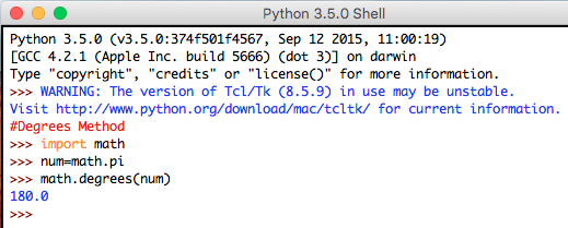 Syntax: math.degrees(num)