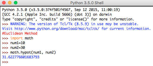 Syntax: math.hypot(num1, num2)