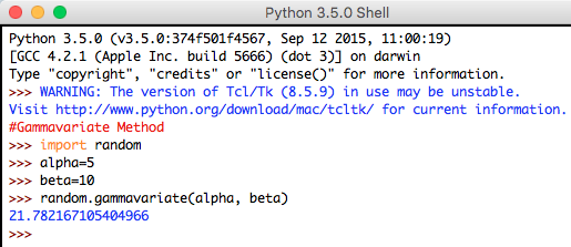 Syntax: random.gammavariate(alpha, beta)