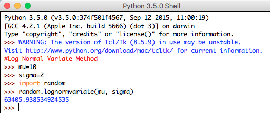 Syntax: random.lognormvariate(mu, sigma)