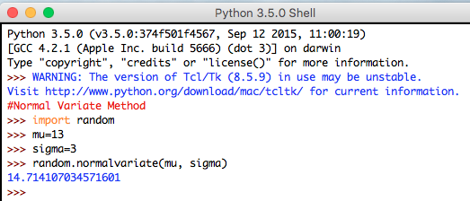 Syntax: random.normalvariate(mu, sigma)