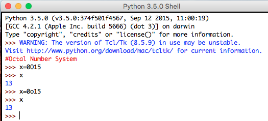 - Octal: Prefixed by - "0O" or "0o"