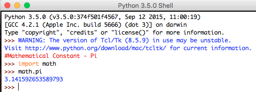 Syntax: math.pi